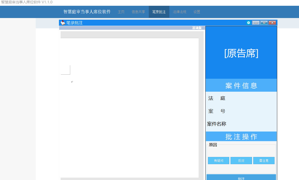 系統(tǒng)支持筆錄批注功能,當(dāng)事人在庭審過程中對有異議的筆錄信息進(jìn)行批注,書記員可以同步看到批注內(nèi)容,方便書記員對筆錄及時(shí)修改;