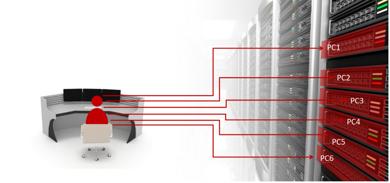 每個(gè)坐席上只需一套鼠標(biāo)鍵盤(pán),即可管理業(yè)務(wù)系統(tǒng)電腦主機(jī)?赏ㄟ^(guò)鍵盤(pán)快捷鍵操作,彈出系統(tǒng)權(quán)限內(nèi)主機(jī)列表,快速調(diào)取不同業(yè)務(wù)主機(jī)進(jìn)行操作,節(jié)省大廳空間資源,靈活管控多臺(tái)主機(jī),并支持多平臺(tái)、跨平臺(tái)與跨網(wǎng)段之間操作。