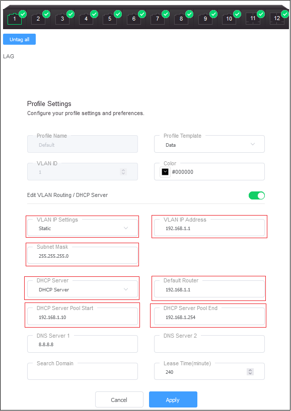 b-創(chuàng)建所需的 DHCP 配置并單擊“Apply”