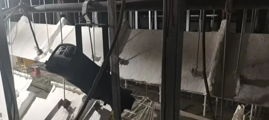 舞臺上空燈桿,景桿燈好了,下午安裝軌道和吊掛側(cè)光