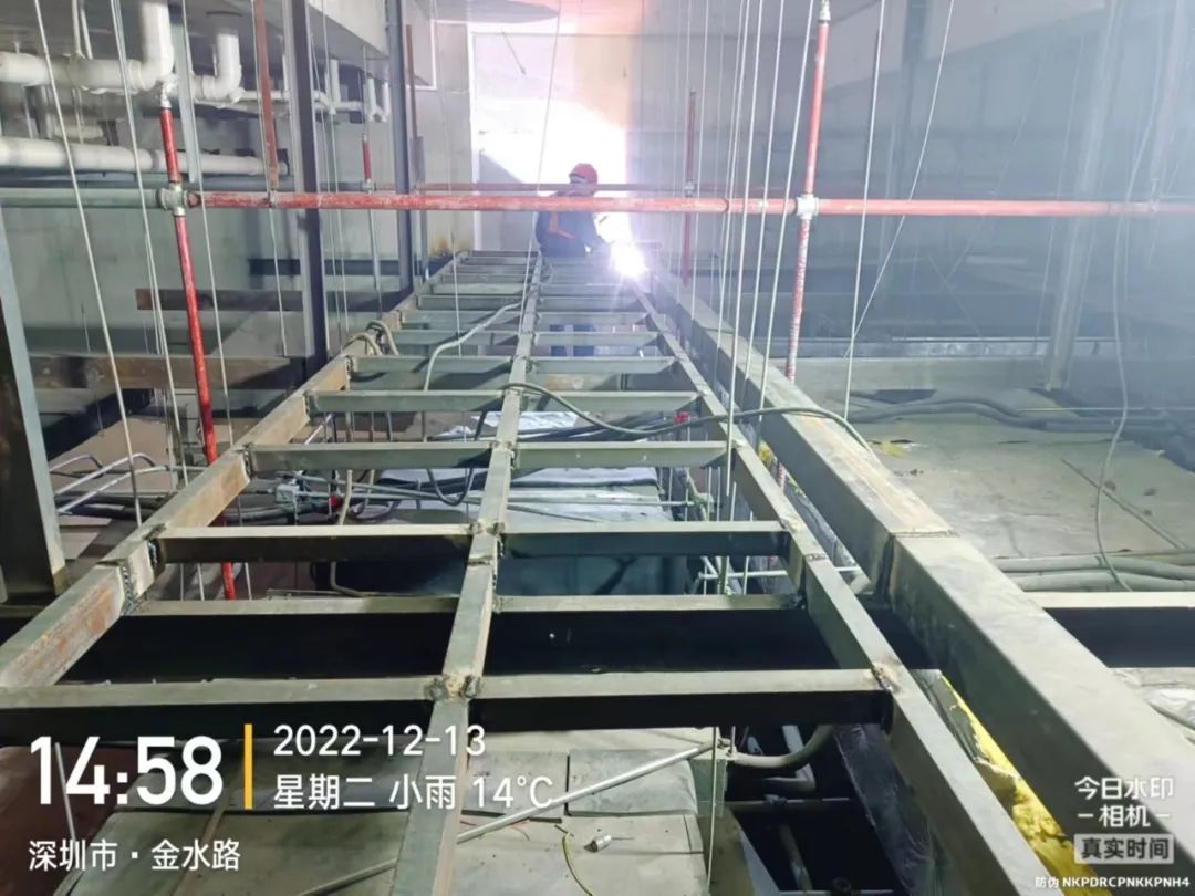 主梁及馬道安裝完成后,進行接縫檢查,確保每一處不落下。