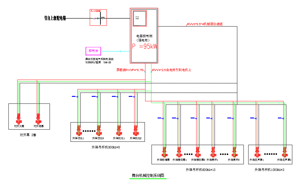 8、控制系統(tǒng)可以提供所有舞臺機械的全功能控制與操作,包括單體設(shè)備的控制、設(shè)備聯(lián)鎖、設(shè)備狀態(tài)監(jiān)視、預(yù)選擇設(shè)備、設(shè)定運動參數(shù)、編組運行、場景記憶、場景序列、故障診斷、系統(tǒng)維護等。