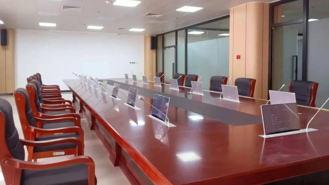 無紙化會議系統(tǒng):本次項目采用15.6寸單屏帶話筒無紙化會議系統(tǒng),該系統(tǒng)支持會議發(fā)言管理、會議議程、讀取U盤內(nèi)容、臨時文件、電子白板、會議服務(wù)等;智能推送會議文件,后臺文件按會議進程自動按權(quán)限推送到前端會議終端;可設(shè)定文件推送權(quán)限,無權(quán)顯示的會議終端會自動屏蔽該文件顯示;發(fā)言音質(zhì)清晰、無雜音,讓會議實現(xiàn)多媒體、多功能化,實時交互更加多元化,提高會議效率及質(zhì)量。