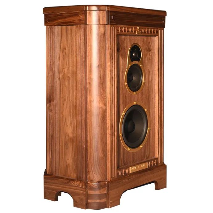 全胡桃實(shí)木外箱體:胡桃屬木材中較優(yōu)質(zhì)的一種,主要產(chǎn)自北美和歐洲。國(guó)產(chǎn)的胡桃木,顏色較淺。黑胡桃呈淺黑褐色帶紫色,弦切面為美麗的大拋物線花紋(大山紋)。黑胡桃非常昂貴。胡桃木有良好的物理穩(wěn)定性,不易變形,是高檔音箱箱體的首選制作材料。