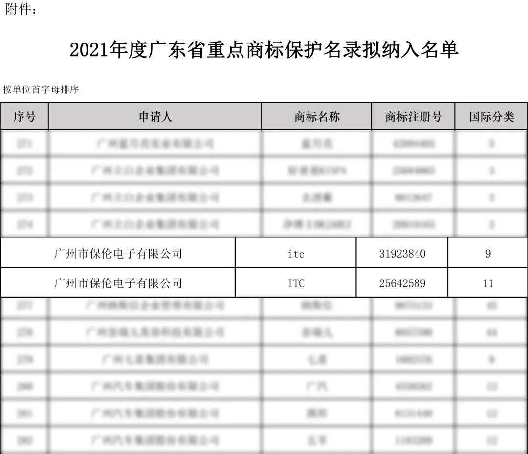 2022年4月25日,2021年度廣東省重點(diǎn)商標(biāo)保護(hù)名錄正式公告。本次活動(dòng)共有1287件申報(bào)材料進(jìn)入專(zhuān)家評(píng)審環(huán)節(jié),經(jīng)過(guò)商保委審議會(huì)議后,有580件商標(biāo)進(jìn)入公示環(huán)節(jié),公示過(guò)后,最終共有607件商標(biāo)被納入2021年度廣東省重點(diǎn)商標(biāo)保護(hù)名錄。廣州市保倫電子有限公司“itc”、“ITC”商標(biāo)從眾多申請(qǐng)中脫穎而出,成功納入2021年度廣東省重點(diǎn)商標(biāo)保護(hù)名錄。