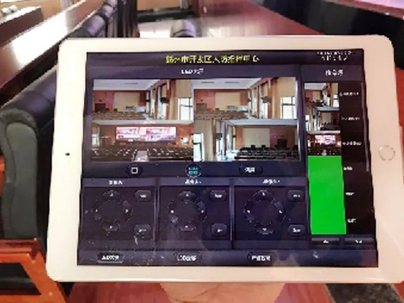 現(xiàn)場已實(shí)現(xiàn)無紙化的升降、視頻切換、音頻控制、設(shè)備的電源開關(guān)、大屏的開關(guān)等功能。