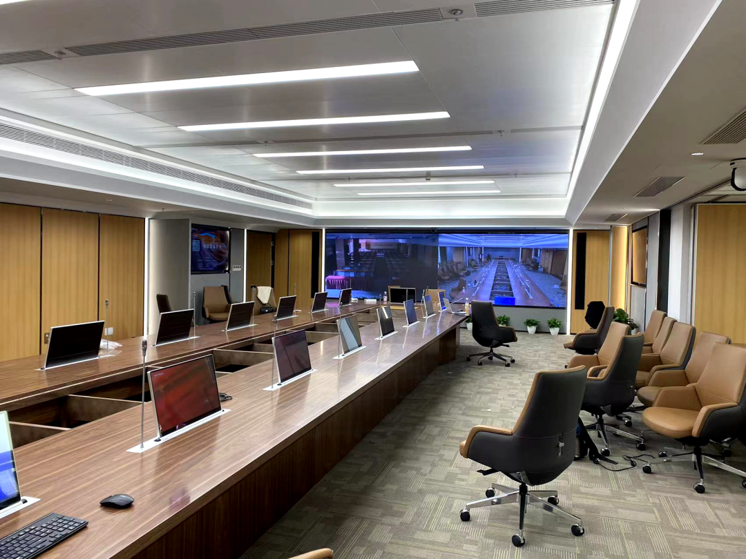 會議室采用視通科技自主研發(fā)的4K分布式KVM坐席拼控系統(tǒng),進行統(tǒng)一音視頻調(diào)度,實現(xiàn)各區(qū)域信息調(diào)取、顯控、視頻會議,環(huán)境控制,滿足各區(qū)域互聯(lián)互通、靈活交互,為協(xié)同管控提供強有力的信息化支撐。