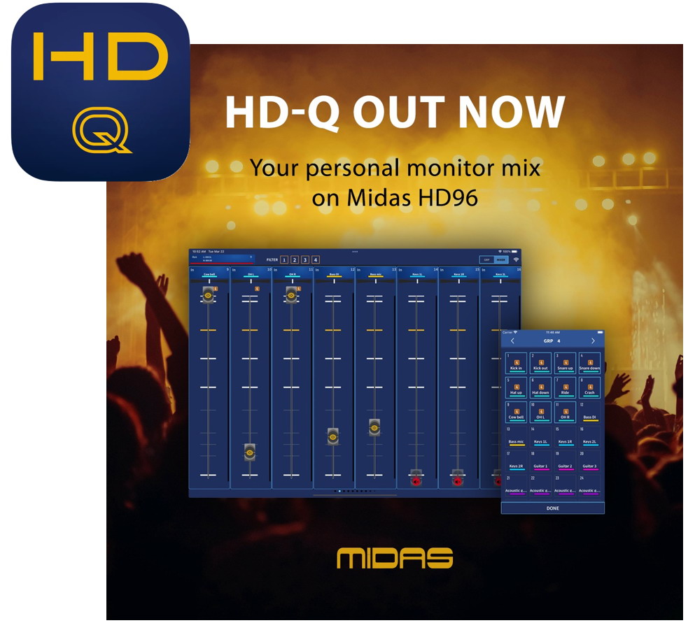 同樣,MIDAS現(xiàn)已推出HD96-24的遠(yuǎn)程控制軟件——HD-Q。目前它是一款iOS應(yīng)用程序,可用于控制HD96-24的個人混音。借助HD-Q,調(diào)音師可以控制自己的監(jiān)聽混音(單聲道/立體聲),并單獨(dú)完全訪問所有輸入通道;且輸入也可以組合成4組之一以進(jìn)行可變相對控制。目前支持的設(shè)備有:iPhone、iPad、iPod touch、Mac。