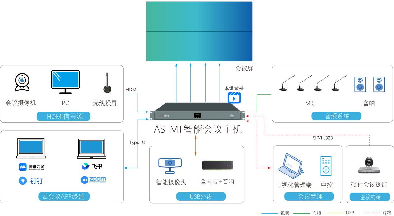 AS-MT智能會(huì)議主機(jī),是一款針對(duì)中小型會(huì)議室設(shè)計(jì)的產(chǎn)品,主機(jī)集4K視頻矩陣,數(shù)字音頻處理,中控,SIP/H.323視頻會(huì)議和MCU,錄播,可視化管理于一體。