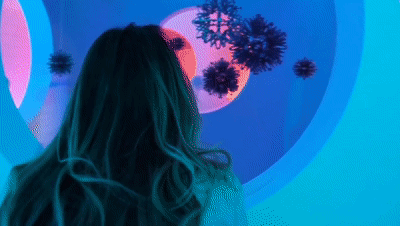 參觀者將探索一個(gè)充滿五彩漸變色彩的迷宮空間,體驗(yàn)者通過(guò)他們?cè)谌粘V械淖匀恍袨,如呼吸,說(shuō)話和觸摸,最終成為展覽的一部分。