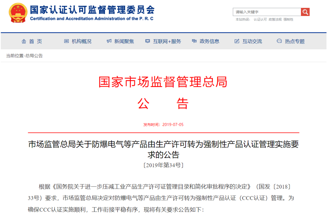 隨著工業(yè)化進(jìn)程不斷發(fā)展,產(chǎn)品生產(chǎn)、防爆安全越來越被行業(yè)所重視。按市場(chǎng)監(jiān)管總局2019年34號(hào)文要求,自2019年10月1日起,防爆電氣產(chǎn)品納入CCC認(rèn)證管理范圍。
