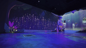 當(dāng)游客在觸摸墻面畫面熱區(qū)的時候,就會產(chǎn)生奇特的互動效果。