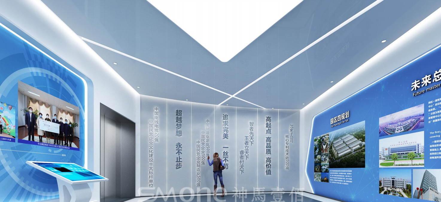 貫穿過去、現(xiàn)在和未來,營造具有強(qiáng)烈藝術(shù)感染力的展示環(huán)境,綜合運用現(xiàn)代智能化、數(shù)字互動及多媒體系統(tǒng)打造沉浸式互動型園區(qū)展廳,成為向廣大參觀者展示中興智慧物流園的實力成就和遠(yuǎn)景規(guī)劃的重要載體和招商窗口。