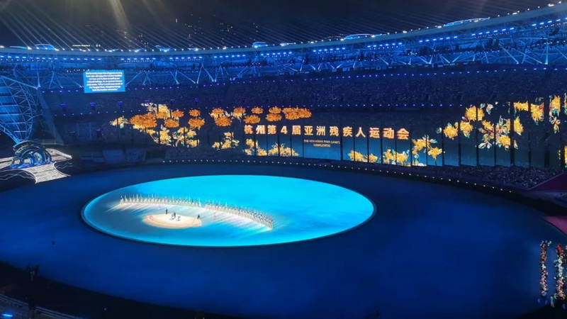 10月22日,在杭州舉行的第四屆亞殘運會開幕式上,高科技的展現(xiàn)與文化自信、溫暖情感完美融合,向亞洲各代表團運動員傳遞美好與祝福。此次開幕式以“心相約,夢閃耀”為主題,通過AR虛擬視效配合,釋放出象征著夢想與榮耀的“金桂之光”,呈現(xiàn)出殘健共融的溫暖、感人、勵志畫面。