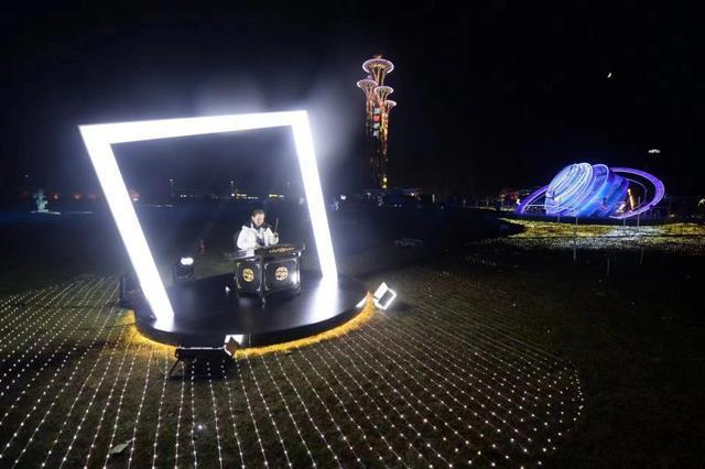 除了燈光表演,主會場內(nèi)外一組組大型戶外燈光裝置也令游人目不暇接!缎芹E探索》(Stellar Journeys)、《星河 Milky Way》、自貢彩燈以及同燈光裝置相結(jié)合的雕塑作品等,給燈光節(jié)增添了一抹別具一格的“文藝味兒”。