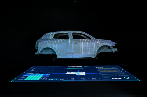 針對(duì)數(shù)字技術(shù)的研發(fā)創(chuàng)新,中心也詳細(xì)演示了基于工業(yè)互聯(lián)網(wǎng)平臺(tái)研發(fā)的一批業(yè)內(nèi)領(lǐng)先的、高價(jià)值的工業(yè)軟件。其中,在3D Mapping投影展示區(qū)域,以投影實(shí)體白車身和人機(jī)交互操作屏的形式,重點(diǎn)呈現(xiàn)了聚焦汽車點(diǎn)焊、噴涂、尺寸質(zhì)量等環(huán)節(jié)工藝質(zhì)量提升的工業(yè)軟件。