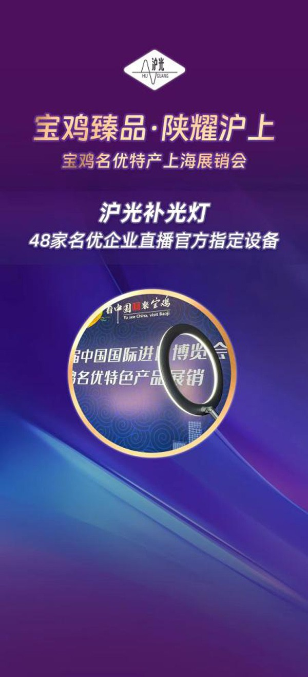 本次展銷會,寶雞市多家名優(yōu)企業(yè)悉數(shù)亮相滬上街頭,包括食品加工類、醫(yī)藥類、餐飲類、釀造類、零售類、酒類、紡織品類等國家級與省市級老字號品牌。滬光濾藍光補光燈作為“寶雞臻品·陜耀滬上”直播官方指定設備,為寶雞市48家名優(yōu)企業(yè)提供直播設備贊助。