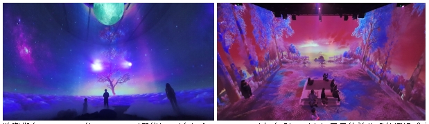 游客們在Museum X的“Surround(環(huán)繞)”(左)和“Symphony(交響樂)”(右)展區(qū)體驗(yàn)壯觀的沉浸式空間