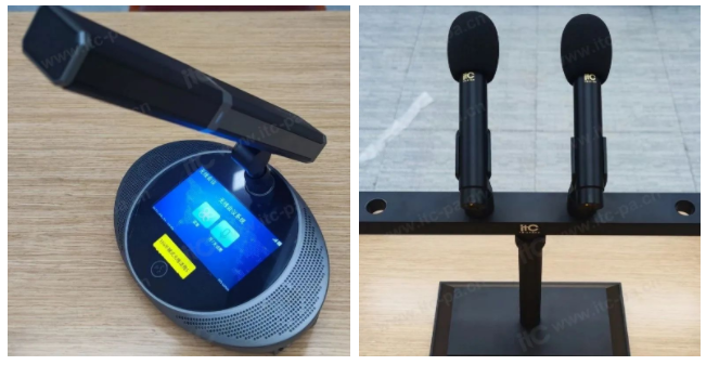 在報(bào)告廳的主席臺(tái)前,每個(gè)坐席均配置wifi數(shù)字會(huì)議發(fā)言單元,支持多種會(huì)議模式,內(nèi)置DSP自適應(yīng)音頻處理機(jī),可以最大抑制聲回輸。數(shù)字鵝頸會(huì)議系統(tǒng)單元,話筒面板上設(shè)有LED顯示屏,可以及時(shí)顯示話筒的各種狀態(tài)和信息提示,為各類會(huì)議發(fā)言提供高保真、高清晰的聲音傳遞。