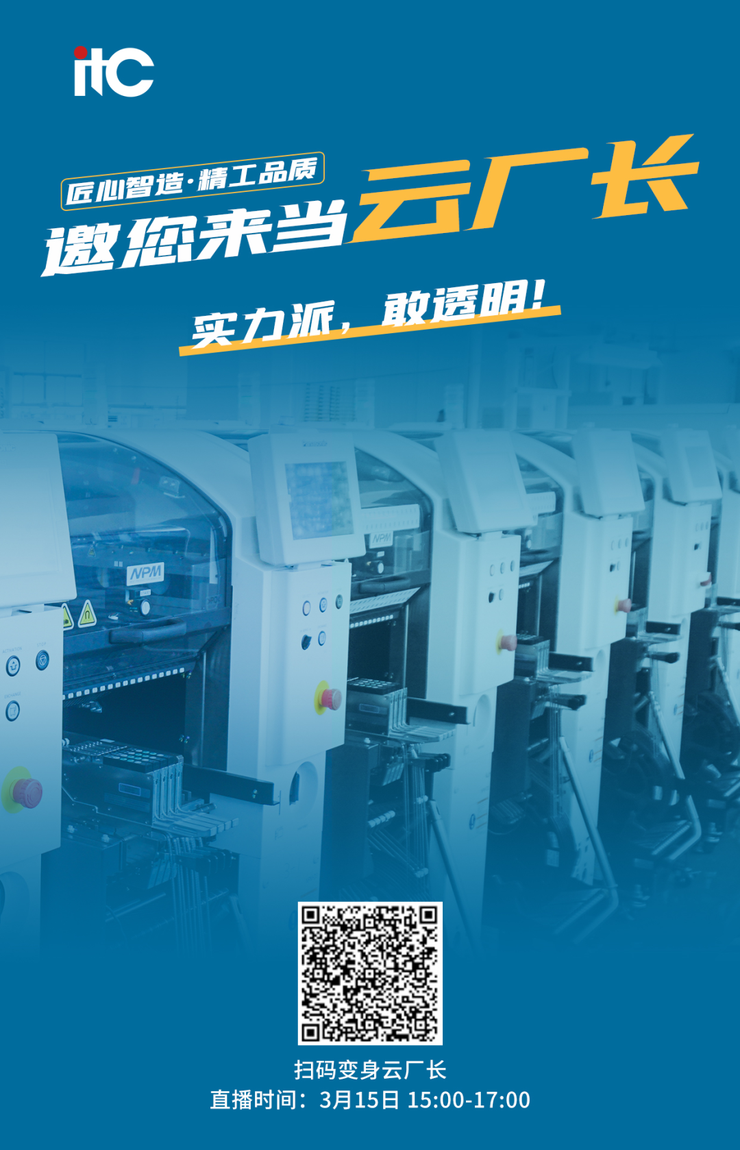 為讓大家近距離了解企業(yè)在宣傳貫徹落實省、市、區(qū)高質(zhì)量發(fā)展大會的部署要求,推動“第一責(zé)任人”知法明責(zé)、守法履責(zé)等方面所做的工作。3月15日,由番禺區(qū)市場監(jiān)督管理局指導(dǎo),廣東保倫電子股份有限公司(itc)主辦的“匠心智造.精工品質(zhì)——itc邀您來當(dāng)云廠長”主題活動,將以網(wǎng)絡(luò)直播形式帶大家直擊itc透明工廠,一同檢閱itc的品質(zhì)管控流程。