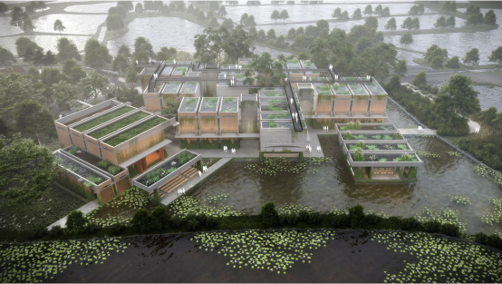 朗頭村是廣東省內(nèi)保存規(guī)模最大的傳統(tǒng)廣府古村落之一,2013年8月26日,朗頭村被住房城鄉(xiāng)建設(shè)部、文化部、財(cái)政部公布為第二批中國(guó)傳統(tǒng)村落。文化中心位于朗頭村入口南側(cè),項(xiàng)目用地約16畝,總建筑面積約8660平方米;文化中心建筑共三層,其中地上兩層,地下一層,主要空間由展廳(常設(shè)展、臨展廳)、多功能報(bào)告廳、公共閱覽空間、活動(dòng)體驗(yàn)空間、文創(chuàng)簡(jiǎn)餐空間、行政辦公區(qū)域及庫(kù)房、公眾區(qū)域7大部分組成