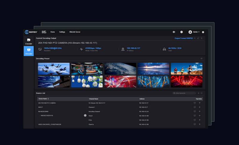 在解碼模式下,通過網(wǎng)頁后臺,您可預設9個解碼目標進行控制,并從多個NDI源中選擇其一解碼輸出。切換過程不黑屏、不閃爍、不卡頓,平滑流暢。