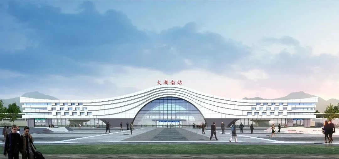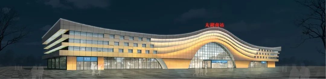 太湖南站,是安慶至九江高速鐵路的中間站點(diǎn)。在站房建筑立面設(shè)計中,以“日出平湖、禪宗圓相”為理念,抽象應(yīng)用類似湖面的柔美曲線與宛若日出的拱形入口作為外部框架,表現(xiàn)碧波蕩漾、日出平湖的形態(tài)及禪宗中圓相的意境。