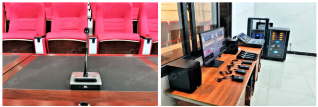 在報(bào)告廳的主席臺(tái)前,每坐席配置itc數(shù)字會(huì)議發(fā)言單元,內(nèi)置鍍金振膜超心型指向性電容式咪芯,音質(zhì)還原度高,抗信號(hào)干擾能力強(qiáng),拾音距離遠(yuǎn),能夠保障會(huì)議全過(guò)程順利開(kāi)展,避免產(chǎn)生噪音和嘯叫。