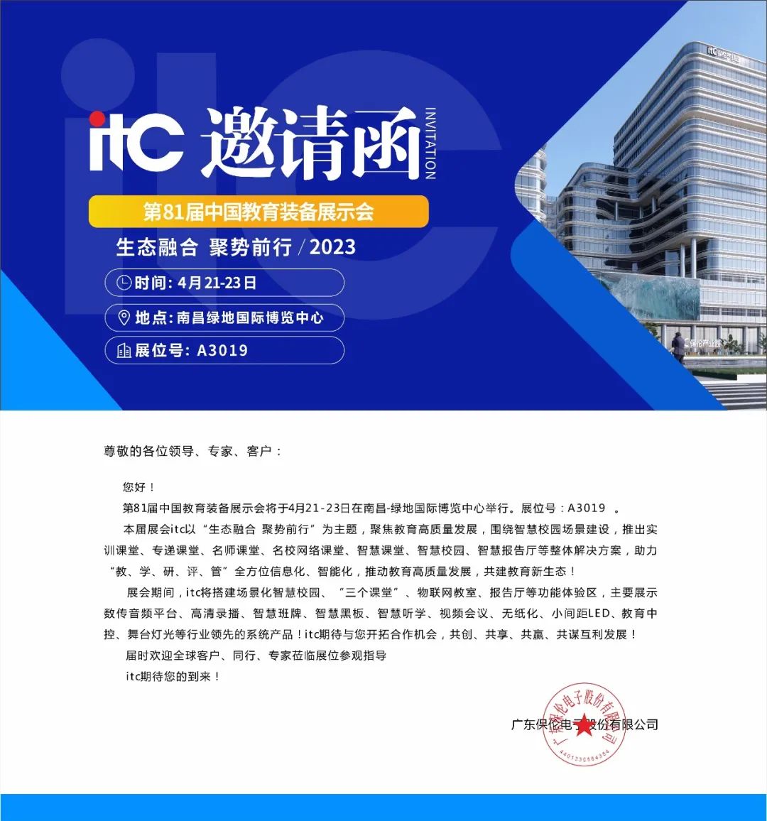 本次展會,itc帶來了云控教室、教室擴(kuò)聲、校園廣播、高清錄播、智慧班牌、智慧黑板、智慧聽學(xué)、視頻會議、無紙化、小間距LED、教育中控、舞臺燈光等行業(yè)領(lǐng)先的系統(tǒng)產(chǎn)品!