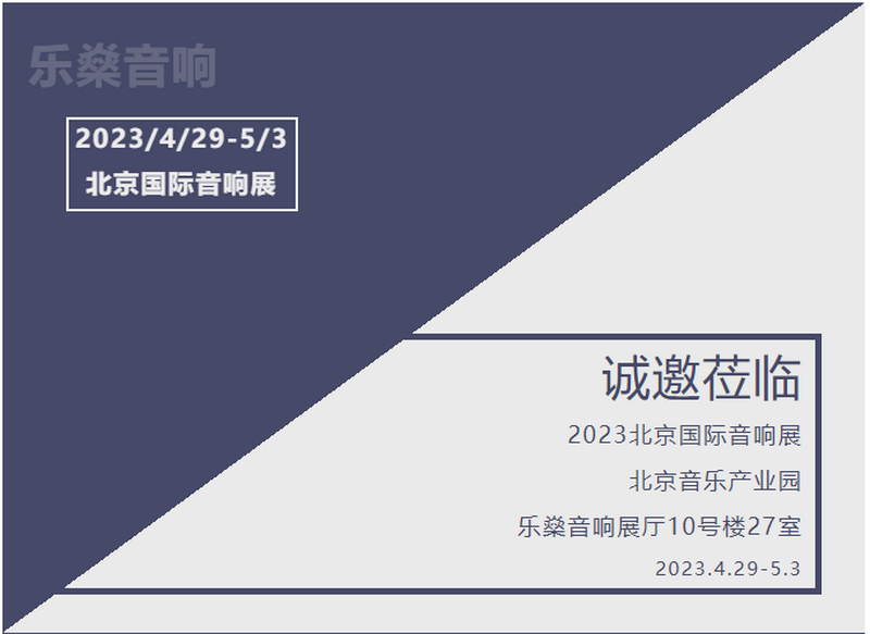 2023北京國(guó)際音響展將于4月29日至5月3日舉行,樂(lè)燊音響展位是:北京音樂(lè)產(chǎn)業(yè)園10號(hào)樓27室,誠(chéng)邀您前來(lái)樂(lè)燊音響展廳光臨品鑒。
