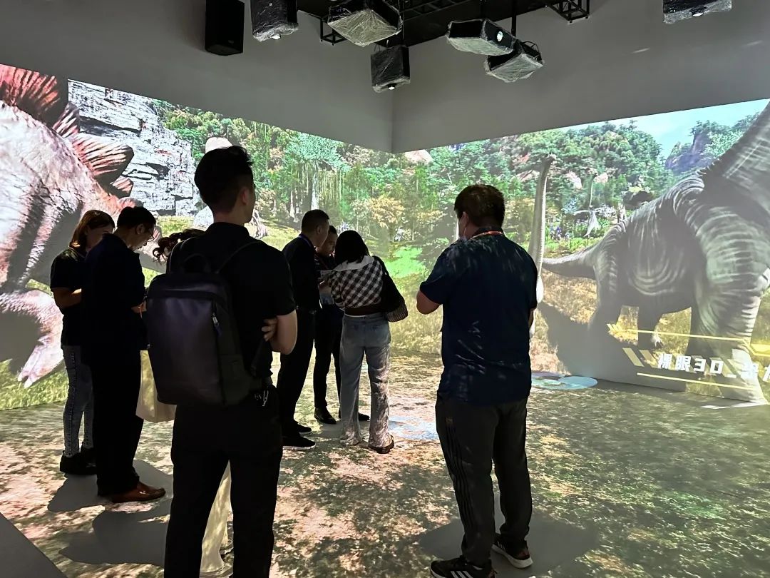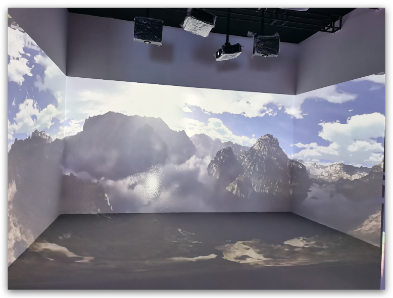 采用6臺(tái)CUL70T加短焦鏡頭,實(shí)現(xiàn)三個(gè)墻面加地面的融合投影。