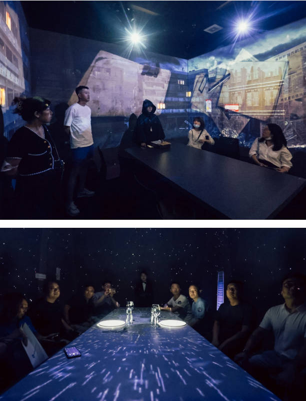 B區(qū):8個Metabox包間,涵蓋面包房、光影餐廳、茶室等應用場景,劇本殺、藝術展、元宇宙等體驗主題,360度全息光影打造沉浸式體驗空間。