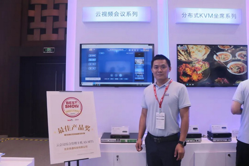 本次展會(huì)獲得高度關(guān)注的是視通科技研發(fā)的新品—AS-MT1云會(huì)議綜合管理主機(jī),該產(chǎn)品主要應(yīng)用在政企行業(yè)。一臺(tái)主機(jī)集成了4K矩陣切換、音頻處理、多媒體中控、6方視頻會(huì)議MCU或獨(dú)立終端,同時(shí)還具備4K錄播功能,通過(guò)雙向tybe-c技術(shù),成功解決了云會(huì)議軟件與本地視頻會(huì)議之間的溝通障礙。