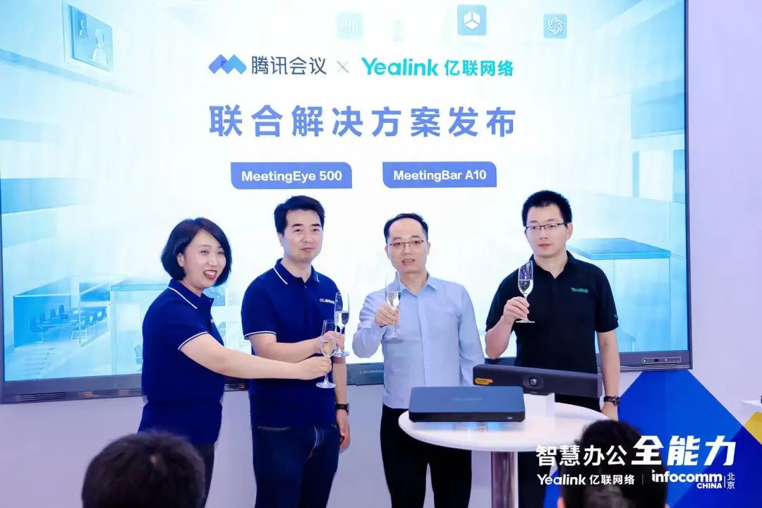 在本次2023 北京Infocomm 展會上,億聯(lián)網絡不僅僅展示了最新產品,還與眾多生態(tài)合作伙伴一同分享行業(yè)趨勢和合作產品。騰訊會議作為億聯(lián)網絡深度戰(zhàn)略合作伙伴,雙方自2019年起就展開了密切合作,2021年北京Infocomm雙方共同發(fā)布了騰訊會議Rooms安卓專用款一體機——億聯(lián)網絡MeetingBarA20。本次在2023北京 Infocomm雙方合作再升級,攜手發(fā)布了全新智會解決方案MeetingBar A10智能安卓視訊一體機和MeetingEye 500超清分體式視訊終端,滿足不同規(guī)模企業(yè)高效智能辦公需求。