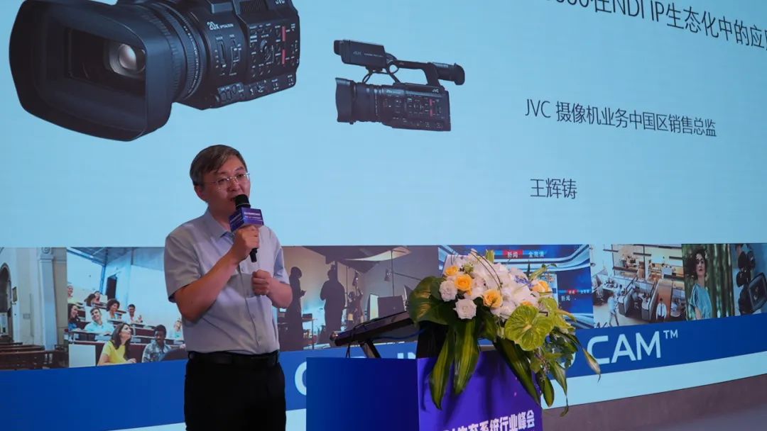 JVC中國(guó)區(qū)銷售總監(jiān)王輝鑄為大家介紹了視頻采集環(huán)節(jié)如何使用NDI技術(shù),而JVC新款相機(jī)具備的無(wú)線NDI功能也讓大家眼前一亮。