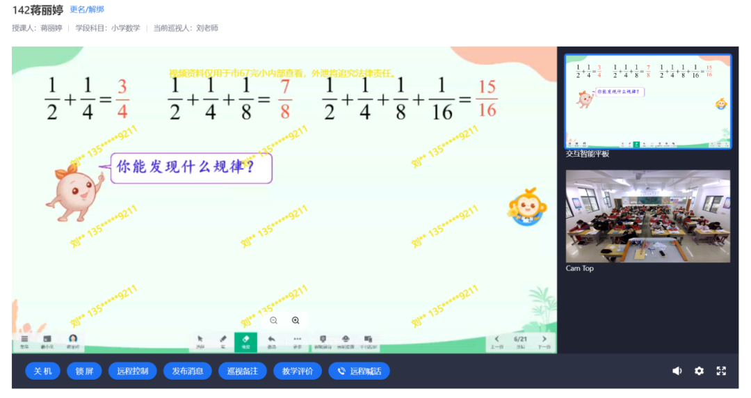 同時,平臺的部署也使教研巡課方式走向數(shù)字化。傳統(tǒng)巡課,當教務人員從窗前走過,一定程度上會影響部分教師上課注意力,F(xiàn)如今,教務老師通過后臺查看各個班級的課堂狀態(tài),有效地避免影響教師授課專注度問題,也為巡課提升了效率。同時,班主任老師也可以通過希沃白板APP,實時查看班級情況。