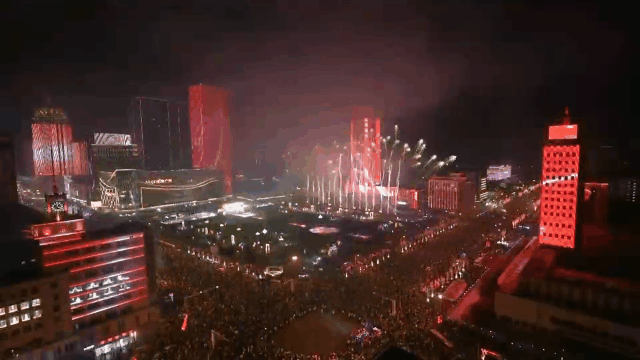 聚集在新華廣場(chǎng)等待跨年的市民游客開(kāi)始齊聲倒數(shù)。直到零點(diǎn),新華廣場(chǎng)的光顯秀、絢麗的煙花和大家的歡呼聲交織在一起,共同見(jiàn)證跨年的幸福時(shí)刻。