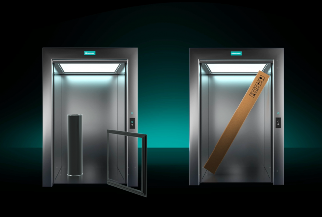 想在家享受影院般的大屏,首先要能把電視裝進家里。百吋大屏入梯、入戶,可是折磨無數(shù)用戶的一大難題。最后的解決方案,無外乎拆門拆窗,甚至于出動吊車,聲勢浩大地將大屏電視請回家。對此,海信推出可折疊安裝方案,徹底解決了這一行業(yè)普遍痛點。