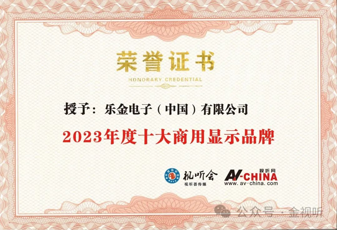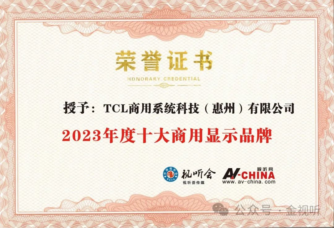 今日,“2023年度金視聽 · 十大商用顯示品牌”名單正式公布。