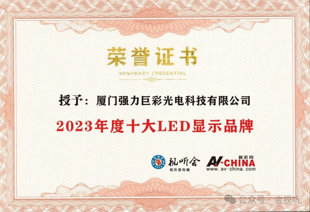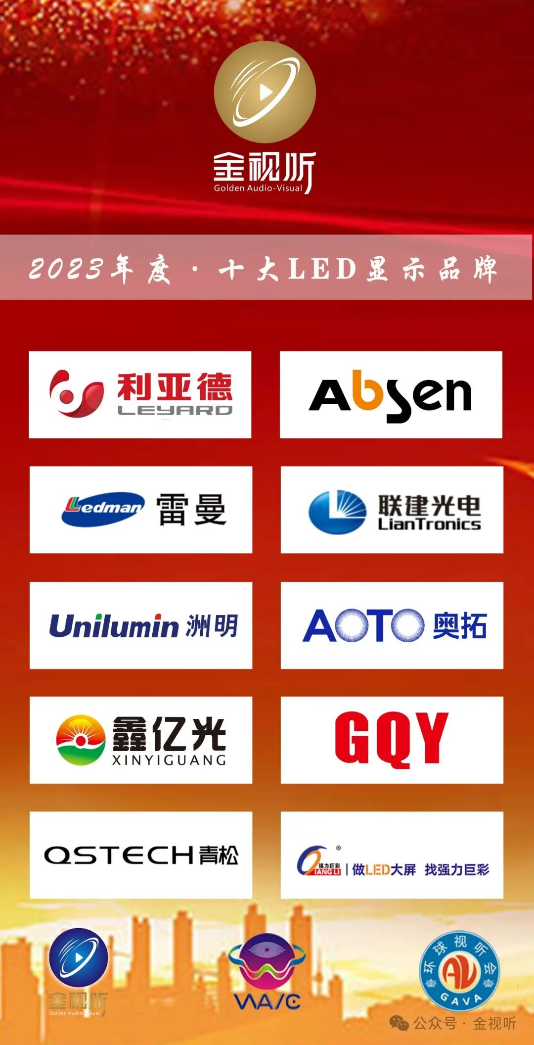 至今,“2023年度金視聽 · 十大LED顯示品牌”名單正式公布。
