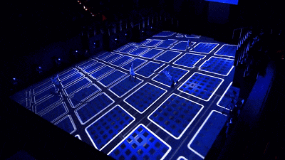 當(dāng)投影畫面應(yīng)用在地面時,普通的靜態(tài)地板便會大變樣,在特定內(nèi)容的配合下煥發(fā)光彩,化身游客的舞蹈場。
