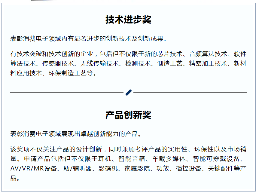 探索科技邊界,引領(lǐng)創(chuàng)新潮流!2025中國(guó)國(guó)際音頻產(chǎn)業(yè)大會(huì)除主旨論壇、專題論壇、快閃演講、展覽展示外,將推出2025年度“GAS消費(fèi)電子科創(chuàng)獎(jiǎng)”,包含“技術(shù)進(jìn)步”獎(jiǎng)及“產(chǎn)品創(chuàng)新”獎(jiǎng)。是一個(gè)旨在推動(dòng)消費(fèi)電子行業(yè)技術(shù)進(jìn)步和產(chǎn)品創(chuàng)新的重要獎(jiǎng)項(xiàng)。