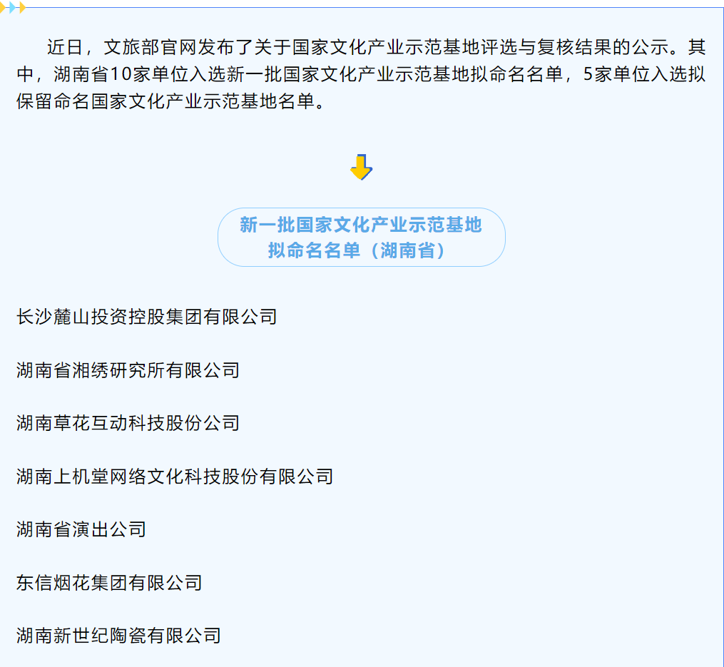 (其它) > 湖南新增10家!國家文化產業(yè)示范基地名單公示