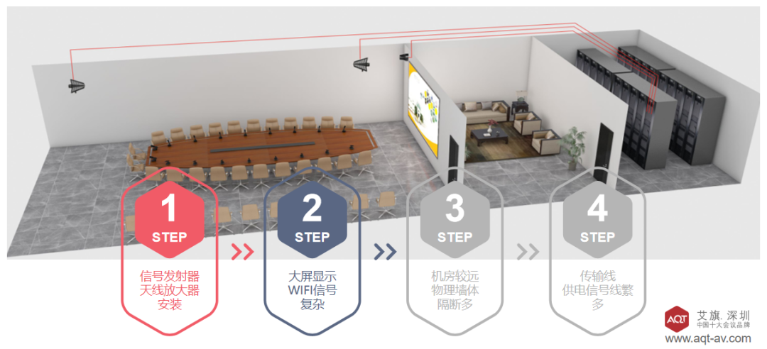 傳統(tǒng)無線會(huì)議需增加天線線放大器,除增加高昂成本,還破壞裝修美感,增加一定程度布線難度, 距離超過天線放大器的接收范圍無法正常使用,也無法解決相關(guān)問題。