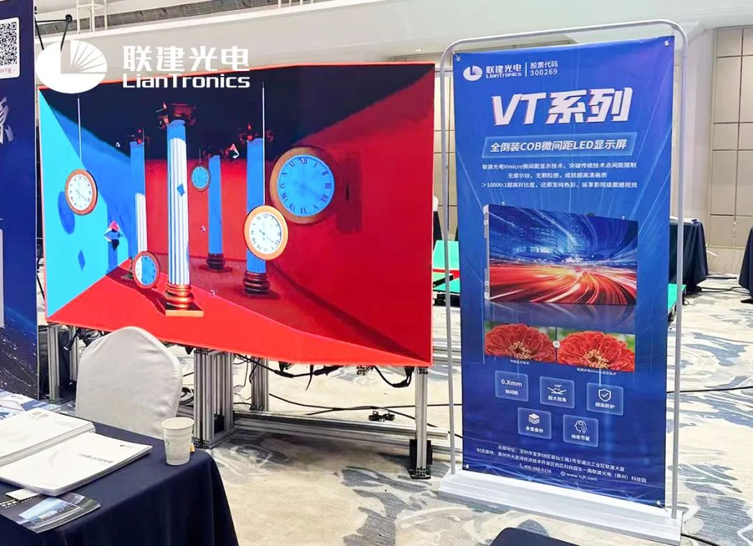 活動(dòng)展區(qū),聯(lián)建光電展示了最新的Vmicro新技術(shù)COB0.9,全倒裝COB封裝,超高對(duì)比度,畫質(zhì)細(xì)膩?zhàn)匀,吸引觀眾紛紛駐足停留并咨詢體驗(yàn)。