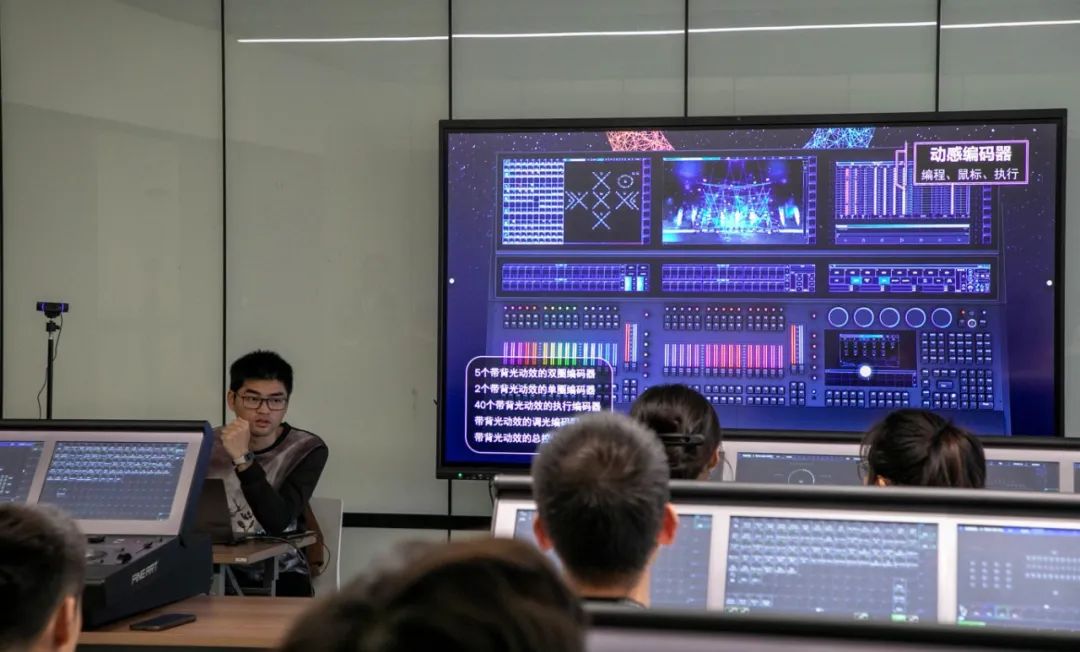彩熠控臺(tái)產(chǎn)品經(jīng)理王培忠擔(dān)任主講,現(xiàn)場演示彩熠TEKMAND 控臺(tái)燈光秀編程、設(shè)計(jì)的方法,幫助學(xué)員們深入了解控臺(tái)技術(shù),從理論到實(shí)踐受益匪淺。