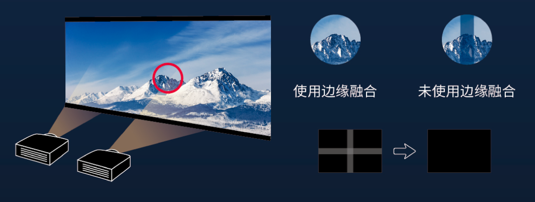 由于配備了先進(jìn)內(nèi)置邊緣融合功能,PJ RU9600L與PJ RU11000L能夠?qū)崿F(xiàn)多機(jī)無(wú)縫投射巨幅畫(huà)面,用戶可調(diào)融合帶寬度,消除多余亮度,確保精準(zhǔn)細(xì)膩的融合效果。此外,PJ RU9600L與PJ RU11000L還支持PIP/PBP雙屏顯示,同屏展現(xiàn)不同信號(hào)源,滿足多樣展示需求。