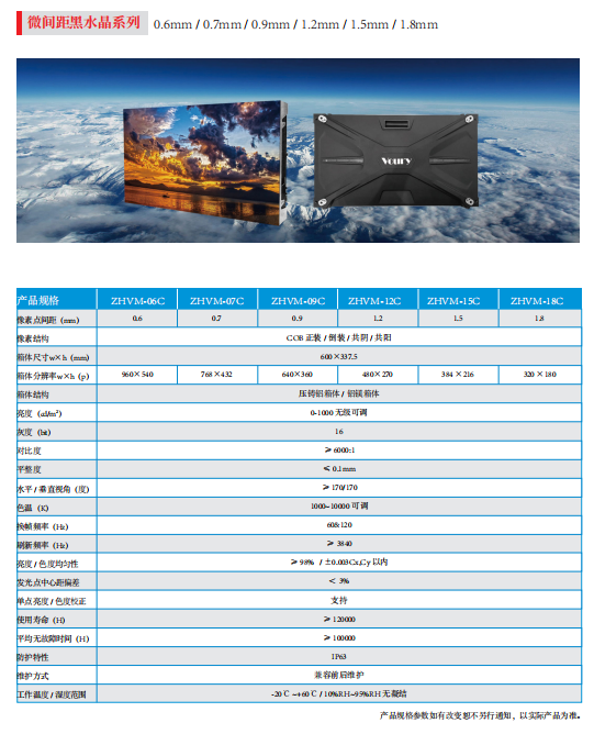 Voury卓華創(chuàng)立十多年來,精準把控不斷變化的市場,在智慧視聽領域深耕場景,潛心研究技術,自研了具有Voury卓華特色的P0.6、P0.7、P1.2、P1.5等系列COB微間距顯示屏產(chǎn)品,同時并結合COB封裝技術工藝,推出了0.6-1.2mm全倒裝動態(tài)像素COB產(chǎn)品并具備量產(chǎn)條件,實現(xiàn)8K超高清的微間距LED顯示屏,全面滿足LED顯示的市場需求。
