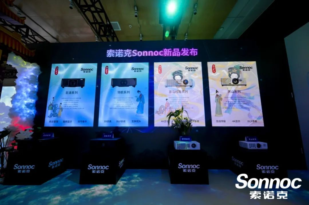 通道右側(cè),索諾克Sonnoc精心布置了新品展示區(qū),新上市的喜馬拉雅、巨浪、天山、領(lǐng)航系列激光投影機(jī)悉數(shù)亮相。為了能夠讓更多客戶近距離感受新品的魅力,索諾克特意于下午3點(diǎn)召開了新品見面會(huì)。在見面會(huì)上,產(chǎn)品負(fù)責(zé)人詳細(xì)解讀了每款新品的獨(dú)特之處。