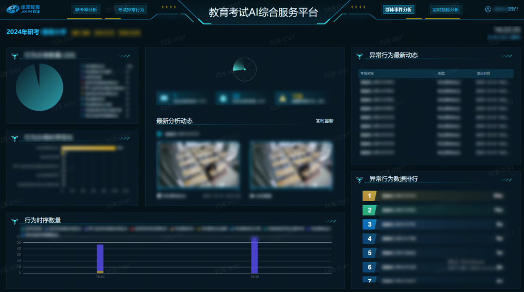 在山東省青島市2024年4月自考智能巡查分析試點(diǎn)應(yīng)用中,佳發(fā)教育在青島黃島開(kāi)發(fā)區(qū)四中考點(diǎn)進(jìn)行了智能巡考系統(tǒng)部署,將學(xué)校監(jiān)考指揮室打造為巡考數(shù)據(jù)總覽和業(yè)務(wù)操作中心。此次自考試點(diǎn)應(yīng)用共歷時(shí)2天。通過(guò)智能巡考系統(tǒng)的異常行為檢測(cè)功能,對(duì)45個(gè)考場(chǎng)內(nèi)的各類違規(guī)行為進(jìn)行精準(zhǔn)化、智能化捕捉,并進(jìn)行精確的數(shù)據(jù)分析,提升考場(chǎng)視頻監(jiān)控的分析深度,保障了考試的公正性。